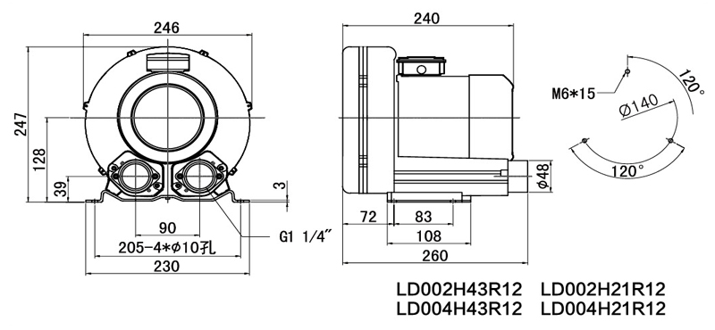 LD004H43R12(0.4KW、0.5KW)高壓鼓風(fēng)機(jī)